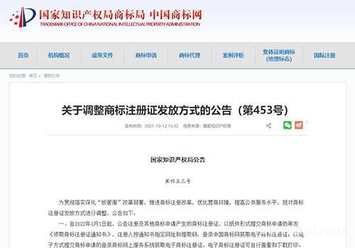 國家知識產權局公告 第四五三號 為貫徹落實深化“放管服”改革部署,推進商標注冊改革,優(yōu)化營商環(huán)境,提高公共服務水平,現(xiàn)對商標注冊證發(fā)放方式進行調整,公告如下: 一、自2022年1月1日起,公告注冊及其他商標申請產生的商標注冊證,以紙件形式提交商標申請的寄發(fā)《領取商標注冊證通知書》,注冊人按通知書指定網址和提取碼,登錄中國商標網獲取電子商標注冊證;以電子方式提交商標申請的登錄商標網上服務系統(tǒng)獲取電子商標注冊證。電子商標注冊證可自行查看和下載打印。國家知識產權局不再發(fā)放紙質商標注冊證。 二、設立過渡期,2021年10月15日至12月31日期間,公告注冊及其他商標申請產生的商標注冊證,以紙件形式提交商標申請的寄發(fā)《領取商標注冊證通知書》,注冊人按通知書指定網址和提取碼,登錄中國商標網獲取電子商標注冊證,同時寄發(fā)紙質商標注冊證;以電子方式提交商標申請的發(fā)放方式暫時不變。 特此公告。 國家知識產權局 2021年10月9日 |
