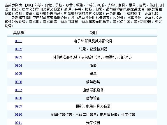 商標第九大類包含哪些 【第九類】科學、航海、測量、攝影、電影、光學、衡具、量具、信號、檢驗(監(jiān)督)、救護(營救)和教學用裝置及儀器;處理、開關(guān)、傳送、積累、調(diào)節(jié)或控制電的裝置和儀器;錄制、通訊、重放聲音或影像的裝置;磁性數(shù)據(jù)載體,錄音盤;光盤,DVD盤和其他數(shù)字存儲媒介;投幣啟動裝置的機械結(jié)構(gòu);收銀機,計算機器,數(shù)據(jù)處理裝置,計算機;計算機軟件;滅火器械。 商標第九大類明細 【0901 組】 電子計算機及其外部設(shè)備 【0902 組】 記錄、自動售貨機和其他記數(shù)檢測器 【0903 組】 其他辦公用機械(不包括打字機、譽寫機、油印機) 【0904 組】 衡器 【0905 組】 量具 【0906 組】 信號器具 【0907 組】 通訊導航設(shè)備 【0908 組】 音像設(shè)備 【0909 組】 攝影、電影用具及儀器 【0910 組】 測量儀器儀表,實驗室用器具,電測量儀器,科學儀器 【0911 組】 光學儀器 【0912 組】 光電傳輸材料 【0913 組】 電器用晶體及碳素材料,電子、電氣通用元件 【0914 組】 電器成套設(shè)備及控制裝置 【0915 組】 電解裝置 【0916 組】 滅火器具 【0917 組】 電弧切割、焊接設(shè)備及器具 【0918 組】 工業(yè)用X光機械設(shè)備 【0919 組】 安全救護器具 【0920 組】 警報裝置,電鈴 【0921 組】 眼鏡及附件 【0922 組】 電池,充電器 【0923 組】 電影片,已曝光材料 【0924 組】 其他 【注釋】 尤其包括: ——實驗室科研用儀器及器械; ——領(lǐng)航用電氣儀器及器械,如測量和傳令儀器及器械; ——量角器; ——穿孔卡式辦公機械; ——不論錄制媒體或傳播途徑的所有的計算機程序和軟件,即包括錄制在磁性媒體 上的軟件或從遠程計算機網(wǎng)絡(luò)上下載的軟件。 尤其不包括: ——下列電動儀器及器械: (1)炊事用電氣用具(食品碾磨和攪拌器、榨果汁器、電動磨咖啡器等)和第七類中使用電動機的其他設(shè)備及器具; (2)抽取或分發(fā)燃料的器具(第七類); (3)電動剃刀和理發(fā)推子(手工具)(第八類); (4)電動牙刷和梳子(第二十一類); (5)房間加熱或液體加熱、烹調(diào)、通風等電器設(shè)備(第十一類); ——鐘表和其他計時器(第十四類); ——時間控制鐘(第十四類); ——與外接顯示屏或監(jiān)視器連用的娛樂和游戲裝置(第二十八類)。 以上是91開業(yè)網(wǎng)小編為您整理的關(guān)于商標第九大類包含哪些,商標第九大類明細的內(nèi)容,希望對您有所幫助。 |