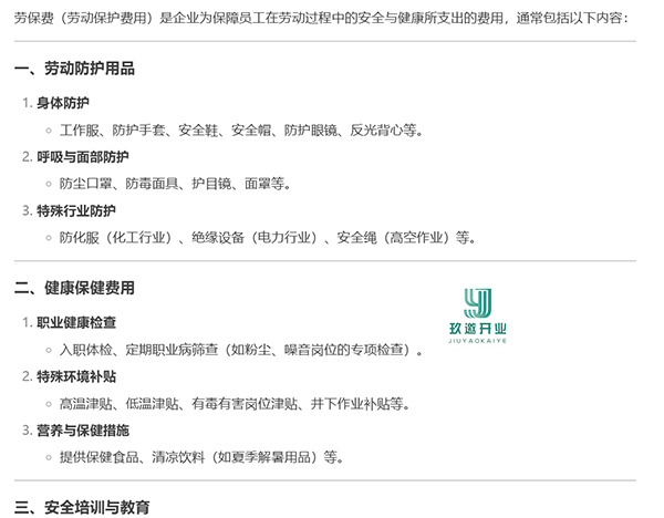 勞保費是什么 勞保費也稱為“勞動保護費”,是指確因工作需要為雇員配備或提供工作服、手套、安全保護用品、防暑降溫用品等所發(fā)生支出。企業(yè)的勞保費應當按規(guī)定進行分類,然后進行企業(yè)所得稅的稅前列支。 勞保費的范圍包括工作服、手套、洗衣粉等勞保用品;解毒劑等安全保護用品;清涼飲料等防暑降溫用品,以及按照原勞動部相關部門所規(guī)定對接觸有毒物質、矽塵作業(yè)、放射線作業(yè)和潛水、沉箱作業(yè)、高溫作業(yè)五類工種所享受的由勞動保護費開支的保健食品等。 以上是玖邀開業(yè)網小編為您整理的關于勞保費是什么的內容,希望對您有所幫助。 |