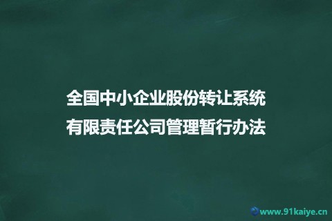 全國中小企業(yè)股份轉(zhuǎn)讓系統(tǒng)有限 責(zé)任公司管理暫行辦法 第一章 總 則 第一條 為加強(qiáng)對全國中小企業(yè)股份轉(zhuǎn)讓系統(tǒng)有限責(zé)任公司(以下簡稱全國股份轉(zhuǎn)讓系統(tǒng)公司)的管理,明確其職權(quán)與責(zé)任,維護(hù)股票掛牌轉(zhuǎn)讓及相關(guān)活動的正常秩序,根據(jù)《公司法》、《證券法》等法律、行政法規(guī),制定本辦法。 第二條 全國中小企業(yè)股份轉(zhuǎn)讓系統(tǒng)(以下簡稱全國股份轉(zhuǎn)讓系統(tǒng))是經(jīng)國務(wù)院批準(zhǔn)設(shè)立的全國性證券交易場所。 第三條 股票在全國股份轉(zhuǎn)讓系統(tǒng)掛牌的公司(以下簡稱掛牌公司)為非上市公眾公司,股東人數(shù)可以超過200人,接受中國證券監(jiān)督管理委員會(以下簡稱中國證監(jiān)會)的統(tǒng)一監(jiān)督管理。 第四條 全國股份轉(zhuǎn)讓系統(tǒng)公司負(fù)責(zé)組織和監(jiān)督掛牌公司的股票轉(zhuǎn)讓及相關(guān)活動,實(shí)行自律管理。 第五條 全國股份轉(zhuǎn)讓系統(tǒng)公司應(yīng)當(dāng)堅(jiān)持公益優(yōu)先的原則,維護(hù)公開、公平、公正的市場環(huán)境,保證全國股份轉(zhuǎn)讓系統(tǒng)的正常運(yùn)行,為全國股份轉(zhuǎn)讓系統(tǒng)各參與人提供優(yōu)質(zhì)、高效、低成本的金融服務(wù)。 第六條 全國股份轉(zhuǎn)讓系統(tǒng)的股票掛牌轉(zhuǎn)讓及相關(guān)活動,必須遵守法律、行政法規(guī)和各項(xiàng)規(guī)章規(guī)定,禁止欺詐、內(nèi)幕交易、操縱市場等違法違規(guī)行為。 第七條 中國證監(jiān)會依法對全國股份轉(zhuǎn)讓系統(tǒng)公司、全國股份轉(zhuǎn)讓系統(tǒng)的各項(xiàng)業(yè)務(wù)活動及各參與人實(shí)行統(tǒng)一監(jiān)督管理,維護(hù)全國股份轉(zhuǎn)讓系統(tǒng)運(yùn)行秩序,依法查處違法違規(guī)行為。 第二章 全國股份轉(zhuǎn)讓系統(tǒng)公司的職能 第八條 全國股份轉(zhuǎn)讓系統(tǒng)公司的職能包括: (一)建立、維護(hù)和完善股票轉(zhuǎn)讓相關(guān)技術(shù)系統(tǒng)和設(shè)施; (二)制定和修改全國股份轉(zhuǎn)讓系統(tǒng)業(yè)務(wù)規(guī)則; (三)接受并審查股票掛牌及其他相關(guān)業(yè)務(wù)申請,安排符合條件的公司股票掛牌; (四)組織、監(jiān)督股票轉(zhuǎn)讓及相關(guān)活動; (五)對主辦券商等全國股份轉(zhuǎn)讓系統(tǒng)參與人進(jìn)行監(jiān)管; (六)對掛牌公司及其他信息披露義務(wù)人進(jìn)行監(jiān)管; (七)管理和公布全國股份轉(zhuǎn)讓系統(tǒng)相關(guān)信息; (八)中國證監(jiān)會批準(zhǔn)的其他職能。 第九條 全國股份轉(zhuǎn)讓系統(tǒng)公司應(yīng)當(dāng)就股票掛牌、股票轉(zhuǎn)讓、主辦券商管理、掛牌公司管理、投資者適當(dāng)性管理等依法制定基本業(yè)務(wù)規(guī)則。 全國股份轉(zhuǎn)讓系統(tǒng)公司制定與修改基本業(yè)務(wù)規(guī)則,應(yīng)當(dāng)經(jīng)中國證監(jiān)會批準(zhǔn)。制定與修改其他業(yè)務(wù)規(guī)則,應(yīng)當(dāng)報(bào)中國證監(jiān)會備案。 第十條 全國股份轉(zhuǎn)讓系統(tǒng)掛牌新的證券品種或采用新的轉(zhuǎn)讓方式,應(yīng)當(dāng)報(bào)中國證監(jiān)會批準(zhǔn)。 第十一條 全國股份轉(zhuǎn)讓系統(tǒng)公司應(yīng)當(dāng)為組織公平的股票轉(zhuǎn)讓提供保障,公布股票轉(zhuǎn)讓即時(shí)行情。未經(jīng)全國股份轉(zhuǎn)讓系統(tǒng)公司許可,任何單位和個人不得發(fā)布、使用或傳播股票轉(zhuǎn)讓即時(shí)行情。 第十二條 全國股份轉(zhuǎn)讓系統(tǒng)公司收取的資金和費(fèi)用應(yīng)當(dāng)符合有關(guān)主管部門的規(guī)定,并優(yōu)先用于維護(hù)和完善相關(guān)技術(shù)系統(tǒng)和設(shè)施。 全國股份轉(zhuǎn)讓系統(tǒng)公司應(yīng)當(dāng)制定專項(xiàng)財(cái)務(wù)管理規(guī)則,并報(bào)中國證監(jiān)會備案。 第十三條 全國股份轉(zhuǎn)讓系統(tǒng)公司應(yīng)當(dāng)從其收取的費(fèi)用中提取一定比例的金額設(shè)立風(fēng)險(xiǎn)基金。風(fēng)險(xiǎn)基金提取和使用的具體辦法,由中國證監(jiān)會另行制定。 第十四條 全國股份轉(zhuǎn)讓系統(tǒng)的登記結(jié)算業(yè)務(wù)由中國證券登記結(jié)算有限責(zé)任公司負(fù)責(zé)。全國股份轉(zhuǎn)讓系統(tǒng)公司應(yīng)當(dāng)與其簽訂業(yè)務(wù)協(xié)議,并報(bào)中國證監(jiān)會備案。 第三章 全國股份轉(zhuǎn)讓系統(tǒng)公司的組織結(jié)構(gòu) 第十五條 全國股份轉(zhuǎn)讓系統(tǒng)公司應(yīng)當(dāng)按照《公司法》等法律、行政法規(guī)和中國證監(jiān)會的規(guī)定,制定公司章程,明確股東會、董事會、監(jiān)事會和經(jīng)理層之間的職責(zé)劃分,建立健全內(nèi)部組織機(jī)構(gòu),完善公司治理。 全國股份轉(zhuǎn)讓系統(tǒng)公司章程的制定和修改,應(yīng)當(dāng)經(jīng)中國證監(jiān)會批準(zhǔn)。 第十六條 全國股份轉(zhuǎn)讓系統(tǒng)公司的股東應(yīng)當(dāng)具備法律、行政法規(guī)和中國證監(jiān)會規(guī)定的資格條件,股東持股比例應(yīng)當(dāng)符合中國證監(jiān)會的有關(guān)規(guī)定。 全國股份轉(zhuǎn)讓系統(tǒng)公司新增股東或原股東轉(zhuǎn)讓所持股份的,應(yīng)當(dāng)報(bào)中國證監(jiān)