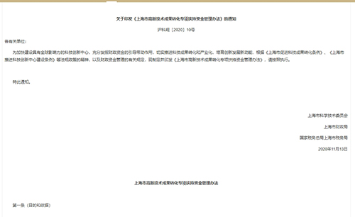 上海市科技型中小企業(yè)技術(shù)創(chuàng)新資金計(jì)劃管理辦法 第一章 總 則 第一條 為加強(qiáng)上海市科技型中小企業(yè)技術(shù)創(chuàng)新資金(以下簡(jiǎn)稱創(chuàng)新資金)計(jì)劃管理,提高科技創(chuàng)新效益,鼓勵(lì)大眾創(chuàng)業(yè)萬(wàn)眾創(chuàng)新,加快建設(shè)具有全球影響力的科技創(chuàng)新中心,根據(jù)《上海市科學(xué)技術(shù)進(jìn)步條例》《上海市推進(jìn)科技創(chuàng)新中心建設(shè)條例》《上海市促進(jìn)中小企業(yè)發(fā)展條例》等規(guī)定,制定本辦法。 第二條 創(chuàng)新資金旨在推動(dòng)本市科技型中小企業(yè)開展技術(shù)創(chuàng)新活動(dòng)?萍夹椭行∑髽I(yè)需符合《科技型中小企業(yè)評(píng)價(jià)辦法》(國(guó)科發(fā)政〔2017〕115號(hào))的有關(guān)要求。 上海市科學(xué)技術(shù)委員會(huì)(以下簡(jiǎn)稱市科委)是創(chuàng)新資金的主管部門,負(fù)責(zé)年度計(jì)劃安排、立項(xiàng)審批和監(jiān)督管理等;各區(qū)科學(xué)技術(shù)部門負(fù)責(zé)轄區(qū)內(nèi)項(xiàng)目配套政策研究制定、申報(bào)推薦、監(jiān)督檢查等。 第三條 創(chuàng)新資金的使用和管理遵守國(guó)家和上海市有關(guān)法律、法規(guī)和財(cái)務(wù)規(guī)章制度,遵循統(tǒng)籌布局、市區(qū)聯(lián)動(dòng)、擇優(yōu)支持、科學(xué)管理、公開透明、?顚S玫脑瓌t。 第二章 支持范圍與方式 第四條 申請(qǐng)創(chuàng)新資金支持的企業(yè)需符合以下條件: (二)企業(yè)主要從事高新技術(shù)產(chǎn)品的研究、開發(fā)、生產(chǎn)或服務(wù)等業(yè)務(wù),具有創(chuàng)新能力和高成長(zhǎng)潛力,一般無(wú)知識(shí)產(chǎn)權(quán)糾紛; (三)企業(yè)上年度營(yíng)業(yè)收入不超過3000萬(wàn)元,已完成的研發(fā)費(fèi)用總額不低于50萬(wàn)元,且研發(fā)費(fèi)用占營(yíng)業(yè)收入比例不低于5%;職工總數(shù)不超過300人,其中直接從事研究開發(fā)的科技人員占比不低于10%; (四)市委市政府有其他相關(guān)要求的,當(dāng)年度申報(bào)通知中予以明確。 第五條 創(chuàng)新資金優(yōu)先支持具備以下條件的項(xiàng)目: (一)國(guó)家重點(diǎn)支持的高新技術(shù)領(lǐng)域中自主創(chuàng)新性強(qiáng)、技術(shù)含量高、市場(chǎng)前景好、能夠培育成新的經(jīng)濟(jì)增長(zhǎng)點(diǎn)的項(xiàng)目。 (二)擁有自主知識(shí)產(chǎn)權(quán)的科技成果轉(zhuǎn)化、在關(guān)鍵共性技術(shù)、前沿引領(lǐng)技術(shù)、現(xiàn)代工程技術(shù)和顛覆性技術(shù)等方面取得新突破的項(xiàng)目。 (三)以企業(yè)為主體的產(chǎn)、學(xué)、研聯(lián)合創(chuàng)新項(xiàng)目,高新技術(shù)園區(qū)、大學(xué)科技園、各類孵化和產(chǎn)業(yè)化基地的創(chuàng)新創(chuàng)業(yè)項(xiàng)目,創(chuàng)投機(jī)構(gòu)投資的創(chuàng)新項(xiàng)目,相關(guān)創(chuàng)新創(chuàng)業(yè)賽事遴選的優(yōu)秀項(xiàng)目等。 第六條 有以下情形之一的,創(chuàng)新資金不予支持: (一)無(wú)自主創(chuàng)新的單純技術(shù)引進(jìn)項(xiàng)目、低水平重復(fù)項(xiàng)目、單純基本建設(shè)項(xiàng)目、一般加工工業(yè)項(xiàng)目等。 (二)申報(bào)上年度及當(dāng)年內(nèi)發(fā)生重大安全、重大質(zhì)量事故和嚴(yán)重環(huán)境違法、科研嚴(yán)重失信行為,以及列入經(jīng)營(yíng)異常名錄和嚴(yán)重違法失信企業(yè)名單。 (三)同一企業(yè)獲得創(chuàng)新資金資助的次數(shù)達(dá)3次及以上。 第七條 在同一年度內(nèi),一個(gè)企業(yè)只能申請(qǐng)一個(gè)創(chuàng)新資金項(xiàng)目。 第八條 創(chuàng)新資金采取后補(bǔ)助的支持方式,根據(jù)評(píng)審結(jié)果,按照以下標(biāo)準(zhǔn)進(jìn)行支持: (一)創(chuàng)新資金支持項(xiàng)目分為A、B兩檔,分別給予不超過20萬(wàn)元/項(xiàng)、10萬(wàn)元/項(xiàng)的資助。在支持項(xiàng)目的基礎(chǔ)上,由市科委推薦至國(guó)家相關(guān)創(chuàng)新創(chuàng)業(yè)項(xiàng)目或賽事,獲得國(guó)家支持的,按照國(guó)家有關(guān)規(guī)定予以資助。 (二)各區(qū)政府應(yīng)當(dāng)對(duì)本轄區(qū)創(chuàng)新資金支持項(xiàng)目予以配套資助,且每個(gè)項(xiàng)目的資助額度不低于市撥付B檔項(xiàng)目的經(jīng)費(fèi)額度。 第三章 申請(qǐng)與受理 第九條 市科委每年結(jié)合本市科技發(fā)展規(guī)劃和產(chǎn)業(yè)發(fā)展重點(diǎn),發(fā)布創(chuàng)新資金申報(bào)通知,對(duì)申報(bào)要求、流程、期限等作出規(guī)定。 第十條 企業(yè)應(yīng)當(dāng)按創(chuàng)新資金當(dāng)年度申報(bào)要求,填報(bào)客觀真實(shí)的申請(qǐng)材料。 第十一條 各區(qū)科學(xué)技術(shù)部門組織轄區(qū)內(nèi)項(xiàng)目申報(bào),對(duì)項(xiàng)目及企業(yè)的申報(bào)資格進(jìn)行審核,并向市科委提出推薦意見。 第四章 評(píng)審與立項(xiàng) 第十二條 市科委結(jié)合實(shí)際情況,組織相關(guān)領(lǐng)域?qū)<,主要圍繞企業(yè)創(chuàng)新投入、經(jīng)營(yíng)管理、團(tuán)隊(duì)實(shí)力、技術(shù)(產(chǎn)品)創(chuàng)新性、產(chǎn)品市場(chǎng)、發(fā)展目標(biāo)可行性等整體狀況進(jìn)行評(píng)審。 第十三條