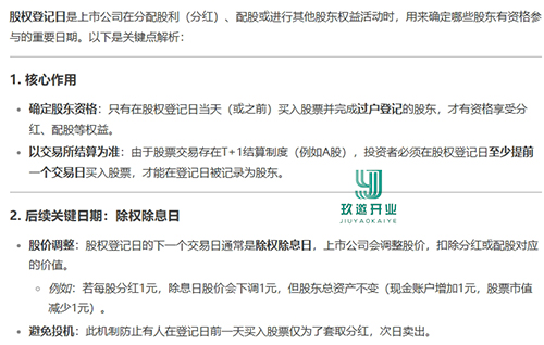 股東大會(huì)日 股東大會(huì)又稱股東會(huì),是股份公司的最高權(quán)力機(jī)構(gòu)。股東大會(huì)按公司章程規(guī)定的期限召開。出席會(huì)議的為在股份公司有表決權(quán)的股東,無表決權(quán)的股東只能在涉及他們利害關(guān)系時(shí)按法律或公司章程的規(guī)定參加。每個(gè)股東表決權(quán)的大小,由他在公司今股權(quán)的多少?zèng)Q定。按公司章程定期召開的稱“股東常會(huì)”;臨時(shí)召開的稱“臨時(shí)股東會(huì)”。開會(huì)時(shí),股東不能出席股東大會(huì)的,可以委托代理人參加,代理人應(yīng)出具股東簽署的委托書。股東大會(huì)一般行使下列職權(quán): 1、聽取并審議董事會(huì)的工作報(bào)告; 2、審定公司的年度財(cái)務(wù)結(jié)算、股息紅利分配方案及彌補(bǔ)虧損的方案; 3、決定公司增加或減少資本; 4、決定公司債券發(fā)行; 5、對公司的分立、合并、終止和清算等作出決議; 6、選舉或罷免董、監(jiān)事會(huì)成員或清算人; 7、修訂公司章程; 8、對公司其他重要事項(xiàng)作出決議。股東大會(huì)對外不代表公司,對內(nèi)不執(zhí)行業(yè)務(wù),不享有直接經(jīng)營權(quán),它只是通過選舉和罷免董事等對公司經(jīng)營管理進(jìn)行間接的影響。 股東代表大會(huì)是股東人數(shù)眾多的股份制企業(yè)為解決召開股東大會(huì)困難而采取的由代表參加的大會(huì),它也是股份制企業(yè)的最高權(quán)力機(jī)構(gòu),職權(quán)與股東大會(huì)相同,其產(chǎn)生辦法由公司章程規(guī)定。 股權(quán)登記日 即進(jìn)行股權(quán)登記的日期。這一日期是由公司董事會(huì)決定的。只有在股權(quán)登記日前(包括當(dāng)天)在公司股東名箔上登記了股權(quán)的股東,才可以分享最近一次的股息,而在這一日期以后過戶登記的股東只能從下一次開始領(lǐng)取股息。 股息發(fā)放日 即股份公司將股息正式向股東發(fā)放的日期。與股權(quán)登記日、除權(quán)除息日不同,股息發(fā)放日一般不是指特定的某一天,而是一個(gè)時(shí)間區(qū)間。有的公司規(guī)定股東到原代理發(fā)行該股票的金融機(jī)構(gòu)領(lǐng)取。我國實(shí)行的是全面指定交易制度,即投資者(甲方)與證券指定交易的代理商(乙方)簽訂《指定交易協(xié)議書》。甲方在乙方處辦迎指定交易生效后,其證券賬戶內(nèi)的記名證券即同時(shí)在乙方處托管。乙方根據(jù)證券交易所及其登記結(jié)算公司傳送的指定交易證券賬戶的證券余額,為甲方建立明細(xì)賬,用于進(jìn)行相關(guān)證券的結(jié)算過戶。甲方有權(quán)享有乙方提供的交易查詢、代領(lǐng)記名證券紅利、證券余額對賬等服務(wù)。 |