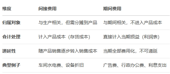 間接費(fèi)用和期間費(fèi)用是會(huì)計(jì)中的兩個(gè)重要概念,在成本核算和財(cái)務(wù)報(bào)表中具有不同的處理方式。以下是兩者的詳細(xì)解釋及區(qū)別: 一、間接費(fèi)用(Indirect Costs) 1. 定義 間接費(fèi)用是指無法直接歸屬于某一特定產(chǎn)品、項(xiàng)目或部門的成本,需通過合理方式分?jǐn)偟蕉鄠(gè)成本對象中。 2. 特點(diǎn) - 間接性:與產(chǎn)品生產(chǎn)相關(guān),但無法直接對應(yīng)具體產(chǎn)品(如工廠租金、設(shè)備折舊)。 - 分?jǐn)傂裕盒璋匆欢?biāo)準(zhǔn)(如工時(shí)、機(jī)器小時(shí))分配到不同產(chǎn)品或部門。 - 計(jì)入產(chǎn)品成本:屬于生產(chǎn)成本的一部分,最終隨產(chǎn)品銷售轉(zhuǎn)化為銷售成本(COGS)。 3. 常見例子 - 生產(chǎn)設(shè)備的維護(hù)費(fèi)、車間照明費(fèi); - 工廠管理人員的工資、廠房的租金; - 間接材料(如潤滑油、清潔用品)。 二、期間費(fèi)用(Period Expenses) 1. 定義 期間費(fèi)用是指企業(yè)在一定會(huì)計(jì)期間內(nèi)發(fā)生的、與產(chǎn)品生產(chǎn)無直接關(guān)聯(lián)的費(fèi)用,直接計(jì)入當(dāng)期損益。 2. 特點(diǎn) - 時(shí)間相關(guān)性:僅與會(huì)計(jì)期間掛鉤,無論產(chǎn)品是否生產(chǎn)或銷售; - 不計(jì)入產(chǎn)品成本:直接費(fèi)用化,影響當(dāng)期利潤表; - 不可遞延:通常在發(fā)生當(dāng)期全額計(jì)入損益,不遞延至后續(xù)期間。 3. 常見例子 - 銷售費(fèi)用:廣告費(fèi)、銷售人員工資; - 管理費(fèi)用:行政人員工資、辦公費(fèi); - 財(cái)務(wù)費(fèi)用:利息支出、匯兌損失。 三、核心區(qū)別 四、實(shí)務(wù)應(yīng)用中的關(guān)鍵點(diǎn) 1. 間接費(fèi)用影響庫存估值:未售出產(chǎn)品的間接費(fèi)用體現(xiàn)在資產(chǎn)負(fù)債表存貨中,售出后轉(zhuǎn)為銷售成本。 2. 期間費(fèi)用直接影響利潤:如管理費(fèi)用過高可能直接拉低當(dāng)期凈利潤。 3. 分類需結(jié)合企業(yè)實(shí)際:同一費(fèi)用在不同企業(yè)可能歸屬不同類別(如管理人員工資,生產(chǎn)部門為間接費(fèi)用,總部則為期間費(fèi)用)。 五、總結(jié) - 間接費(fèi)用是生產(chǎn)活動(dòng)的“幕后支持”,需分?jǐn)偟疆a(chǎn)品,屬于成本核算的核心環(huán)節(jié); - 期間費(fèi)用是企業(yè)的“日常消耗”,直接影響短期盈利能力。 正確區(qū)分兩者對成本管理、定價(jià)策略和財(cái)務(wù)分析至關(guān)重要。 |