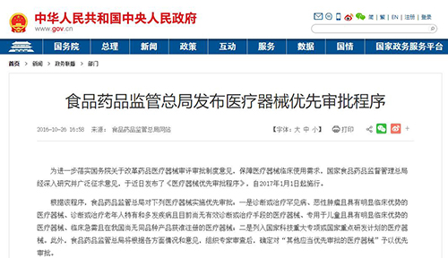 為進一步落實國務(wù)院關(guān)于改革藥品醫(yī)療器械審評審批制度意見,保障醫(yī)療器械臨床使用需求,國家食品藥品監(jiān)督管理總局經(jīng)深入研究并廣泛征求意見,于近日發(fā)布了《醫(yī)療器械優(yōu)先審批程序》,自2017年1月1日起施行。 根據(jù)該程序,食品藥品監(jiān)管總局對下列醫(yī)療器械實施優(yōu)先審批: 一是診斷或治療罕見病、惡性腫瘤且具有明顯臨床優(yōu)勢的醫(yī)療器械、診斷或治療老年人特有和多發(fā)疾病且目前尚無有效診斷或治療手段的醫(yī)療器械、專用于兒童且具有明顯臨床優(yōu)勢的醫(yī)療器械、臨床急需且在我國尚無同品種產(chǎn)品獲準注冊的醫(yī)療器械; 二是列入國家科技重大專項或國家重點研發(fā)計劃的醫(yī)療器械。此外,食品藥品監(jiān)管總局將根據(jù)各方面情況和意見,組織專家審查后,確定對“其他應(yīng)當優(yōu)先審批的醫(yī)療器械”予以優(yōu)先審批。 對確定予以優(yōu)先審批的項目,國家食品藥品監(jiān)督管理總局將全環(huán)節(jié)加快審評審批效率,優(yōu)先進行技術(shù)審評,優(yōu)先安排醫(yī)療器械注冊質(zhì)量管理體系核查,優(yōu)先進行行政審批,縮短產(chǎn)品上市時間,保證相應(yīng)成果和產(chǎn)品能夠盡快應(yīng)用于臨床使用。 本程序的發(fā)布是落實國務(wù)院關(guān)于轉(zhuǎn)變政府職能,推進“放管服”工作要求的具體體現(xiàn),將進一步推動我國醫(yī)療器械產(chǎn)業(yè)發(fā)展,促進臨床急需等產(chǎn)品盡快進入市場,提升人民群眾實現(xiàn)更好的衛(wèi)生健康水平。 |