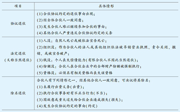 合伙企業(yè)當(dāng)然退伙是指在合伙企業(yè)存續(xù)期間,因發(fā)生法律規(guī)定的事由,導(dǎo)致合伙人當(dāng)然地退出合伙企業(yè),喪失合伙人資格的法律事實(shí)。根據(jù)《中華人民共和國合伙企業(yè)法》第四十八條規(guī)定,合伙人有下列情形之一的,當(dāng)然退伙: 1.作為合伙人的自然人死亡或者被依法宣告死亡:合伙人作為自然人死亡或被宣告死亡,其民事主體資格消滅,無法繼續(xù)參與合伙企業(yè)事務(wù),自然退伙。 2.個(gè)人喪失償債能力:普通合伙人需對合伙企業(yè)債務(wù)承擔(dān)無限連帶責(zé)任,若個(gè)人喪失償債能力,無法履行對合伙企業(yè)債務(wù)的清償責(zé)任,將導(dǎo)致其當(dāng)然退伙。但有限合伙人以其認(rèn)繳的出資額為限對合伙企業(yè)債務(wù)承擔(dān)責(zé)任,個(gè)人喪失償債能力不導(dǎo)致其當(dāng)然退伙。 3.作為合伙人的法人或者其他組織依法被吊銷營業(yè)執(zhí)照、責(zé)令關(guān)閉、撤銷,或者被宣告破產(chǎn):法人或非法人組織作為合伙人,若出現(xiàn)上述情形,其主體資格或經(jīng)營資格喪失,無法繼續(xù)參與合伙企業(yè),從而當(dāng)然退伙。 4.法律規(guī)定或者合伙協(xié)議約定合伙人必須具有相關(guān)資格而喪失該資格:若法律規(guī)定或合伙協(xié)議明確要求合伙人必須具備特定資格,如特定職業(yè)資格、員工身份等,當(dāng)合伙人喪失該資格時(shí),將當(dāng)然退伙。 5.合伙人在合伙企業(yè)中的全部財(cái)產(chǎn)份額被人民法院強(qiáng)制執(zhí)行:合伙人的財(cái)產(chǎn)份額是其參與合伙企業(yè)的重要基礎(chǔ),若全部財(cái)產(chǎn)份額被強(qiáng)制執(zhí)行,其在合伙企業(yè)中的權(quán)益喪失,導(dǎo)致當(dāng)然退伙。 退伙生效日:退伙事由實(shí)際發(fā)生之日為退伙生效日,而非以辦理退伙結(jié)算或工商變更登記為前提。例如,員工因離職喪失合伙人資格,離職之日即為退伙生效日。 |