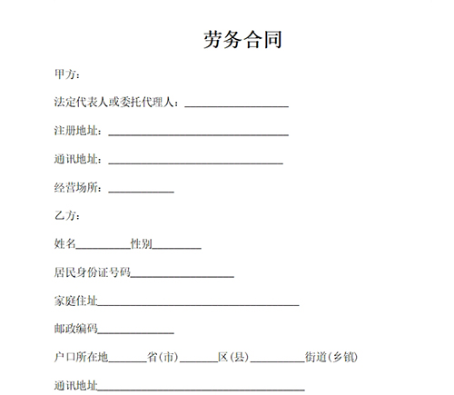 勞務(wù)合同范本 甲方:________________________ 法定代表人:________________________ 住所:________________________ 郵編:________________________ 聯(lián)系電話:________________________ 乙方:________________________ 身份證號碼:________________________ 家庭住址:________________________ 郵政編碼:________________________ 電話:________________________________ 鑒于甲方業(yè)務(wù)的需要,雇傭乙方為甲方提供勞務(wù)。根據(jù)有關(guān)規(guī)定,甲乙雙方經(jīng)平等協(xié)商一致,自愿簽訂本勞務(wù)合同書,共同遵守所列條款。 第一條、 勞務(wù)合同期限 本勞務(wù)合同期限為_____個月,自_____年_____月_____日起至_____年_____月_____日止。甲方視業(yè)務(wù)需要及乙方績效等可提前與乙方解除勞務(wù)關(guān)系或征得乙方同意與乙方續(xù)簽勞務(wù)合同。 第二條、 雙方權(quán)利義務(wù) 1、乙方承諾,根據(jù)乙方目前的健康狀況,能夠按照本合同約定為甲方提供勞務(wù),也愿意承擔所約定之勞務(wù)。 2、甲方根據(jù)業(yè)務(wù)需要,委托乙方承擔_____工作。 3、乙方工作時間根據(jù)甲方需要確定。 4、乙方提供勞務(wù)應(yīng)遵守甲方的規(guī)章制度,達到甲方的各項要求和標準,并接受甲方的績效考核。 5、乙方在為甲方提供勞務(wù)中知悉的甲方商業(yè)秘密,不得提供或泄露給任何第三方。 6、甲方按照乙方提供的勞務(wù),向乙方支付報酬。 7、乙方的各類社會勞動保險費用均由乙方原單位繳納或由乙方本人自行繳納。甲方依法代為扣繳乙方個人所得稅。 第三條、 勞務(wù)報酬支付 1、甲方每月_____日前以貨幣形式支付乙方上一個月的勞務(wù)報酬。 2、甲方每月向乙方支付的勞務(wù)報酬包括保底酬金_____元以及獎金。 獎金的計算方式為: 1、___________________________________________________________ 2、__________________________________________________________________ 3、__________________________________________________________________ 4、如需調(diào)整勞務(wù)報酬,甲乙雙方另行約定。 第四條、 合同的終止與解除 1、本合同期滿如雙方未續(xù)簽,則合同自行終止。雙方應(yīng)及時辦理交接手續(xù)。 2、甲方有權(quán)視業(yè)務(wù)需要及乙方業(yè)績情況等隨時解除本合同。除應(yīng)當支付的勞務(wù)報酬外,甲方不向乙方支付任何補償。 3、乙方需要提前解除本合同,應(yīng)提前_____日通知甲方,或補償甲方_____元代替通知。 4、本合同終止或解除后,雙方應(yīng)及時辦理交接手續(xù)。 第五條、 違約責任 1、甲方不按照本合同約定日期向乙方支付勞務(wù)報酬的,每拖欠一日按照所拖欠金額的萬分之四向乙方支付違約金。 2、乙方在提供勞務(wù)中因故意或過失給甲方造成損失的,按照損失的金額據(jù)實賠償。 第六條、 爭議解決 甲乙雙方在履行本合同過程中發(fā)生爭議,應(yīng)當通過協(xié)商解決。協(xié)商不成的,任何一方均有權(quán)向甲方所在地有管轄權(quán)的人民法院提起訴訟。 第七條、 文本及生效 1、本合同文本一式_____份,甲乙雙方各執(zhí)一份。 2、本合同于甲方蓋章、乙方簽字之日生效。 甲方:_______________有限公司 乙方:_______________ 日期:_____年_____月_____日 日期:_____年_____月_____日 |
